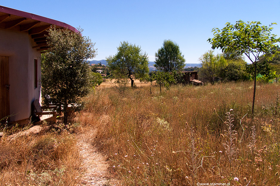 This area should have been mown by now, if only for the fire hazard: in the past extremely dry weeks there were some minor fire outbreaks in the neighbourhood provoked by a combine harvesting the barley. But a mown field in mid-summer is all but animating or interesting while the vegetation at the moment is still pleasant to look at, attracting loads of insects especially on the flower heads of Eryngium campestre (the almost white patches in the photograph). So I decide to wait, also because of the rain which is expected in the coming days. The harvesting machine passed some days ago and I was present and alert, ready to smother any beginning of fire.