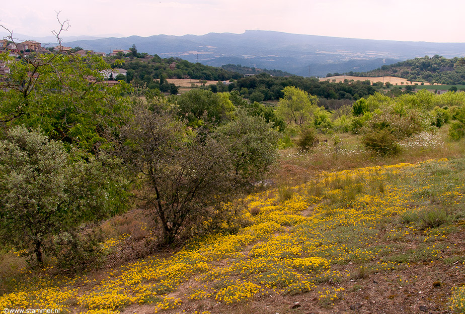 Las flores amarillas de Argyrolobium zanonii ocupan varias decenas de metros cuadrados en una terraza superior. La falta de competidoras se debe probablemente a la capa muy poco profunda de tierra con la roca madre muy cerca de la superficie y asomándose en algunos lugares. Este arbusto enano no tiene uso médico o práctico conocido y es por eso igual poco conocido, pero puede formar una alfombra bonita que no necesita ningún tipo de mantenimiento (siega) para mantenerse.